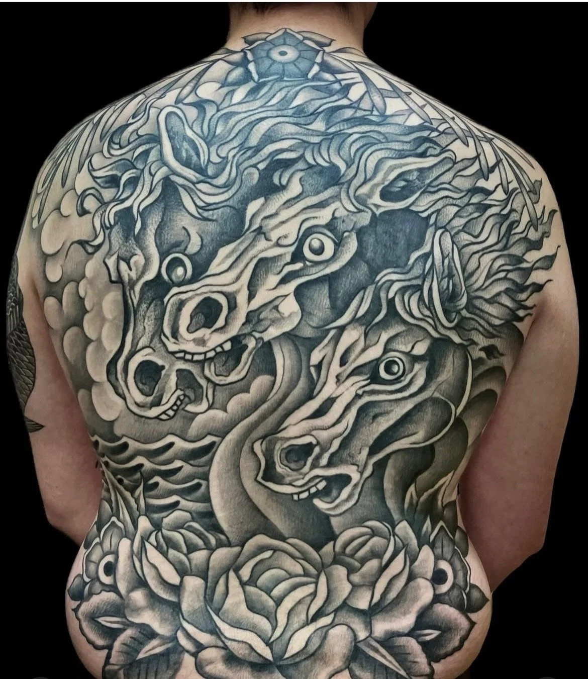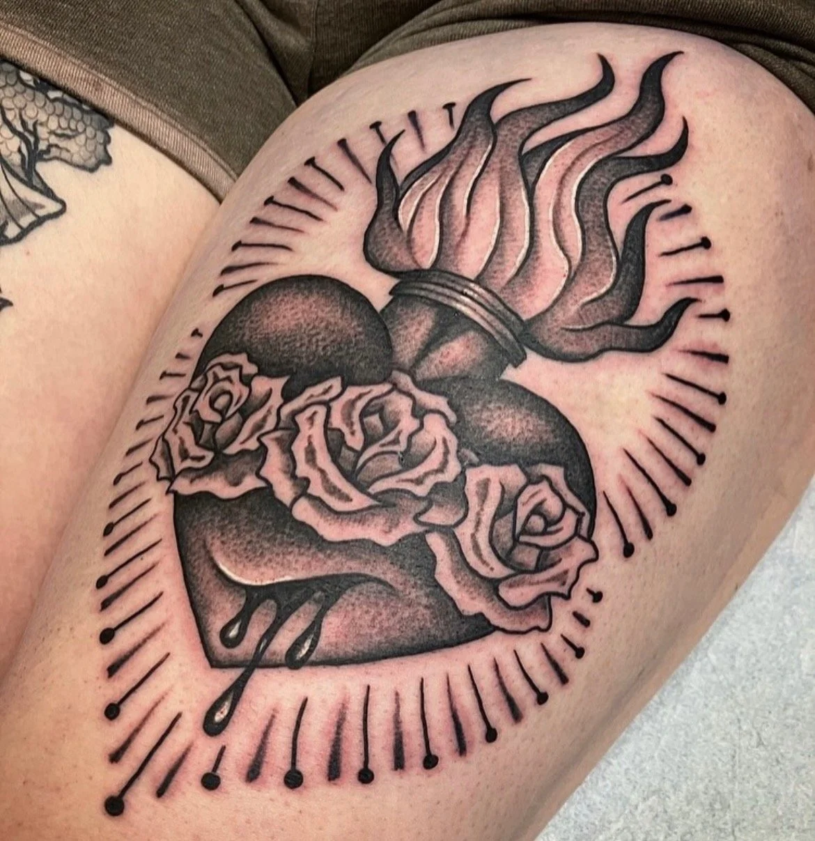 Roger enjoys tattooing bold, iconic imagery in black and gray.