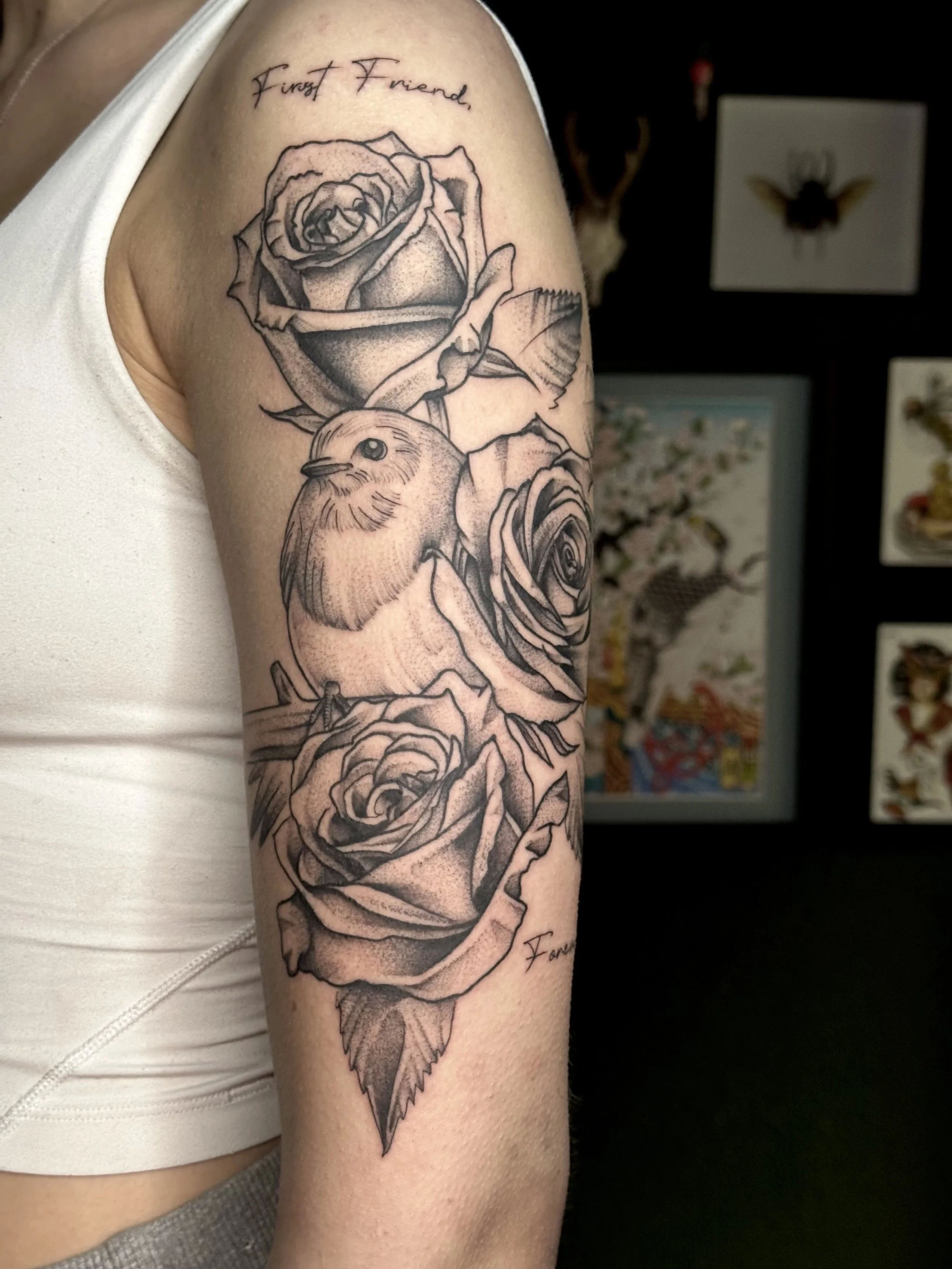 Sam is the youngest member of the Yarian family and specializes in black and grey illustrative work. They have a personal passion for anything pertaining to bugs, bones, flowers and foliage.